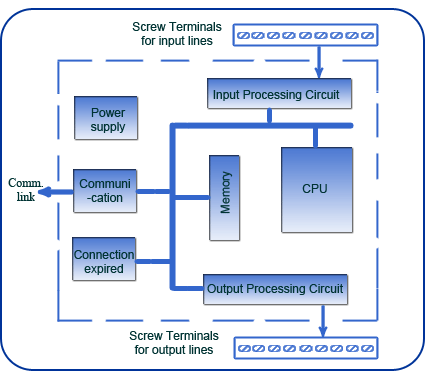 The PLC receives information from connected sensors or input devices, processes the data, and triggers outputs based on pre-programmed parameters.